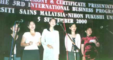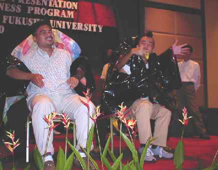 上の二つはUSMの学生の出し物。歌ありダンスあり。下の二つはそのお返しに僕らが歌っているところと二人羽織りしてるところ。
